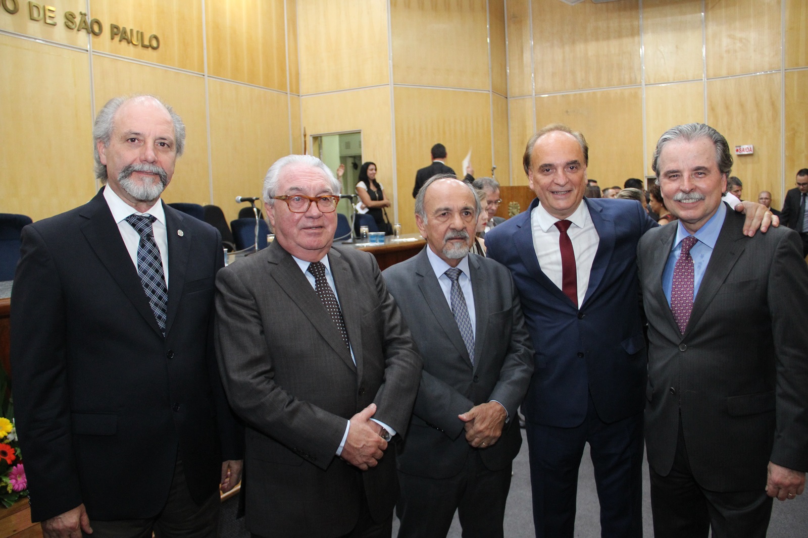 Da esq. p/ dir.: presidente do TRE-SP, des. Carlos Eduardo Cauduro Padin; presidente do TJ-SP, des. Manoel de Queiroz Pereira Calças; vice-presidente do TJ-SP, des. Artur Marques da Silva Filho; secretário da Justiça e da Defesa da Cidadania, Paulo Dimas de Bellis Mascaretti; e presidente do TCE-SP, Cons. Renato Martins Costa