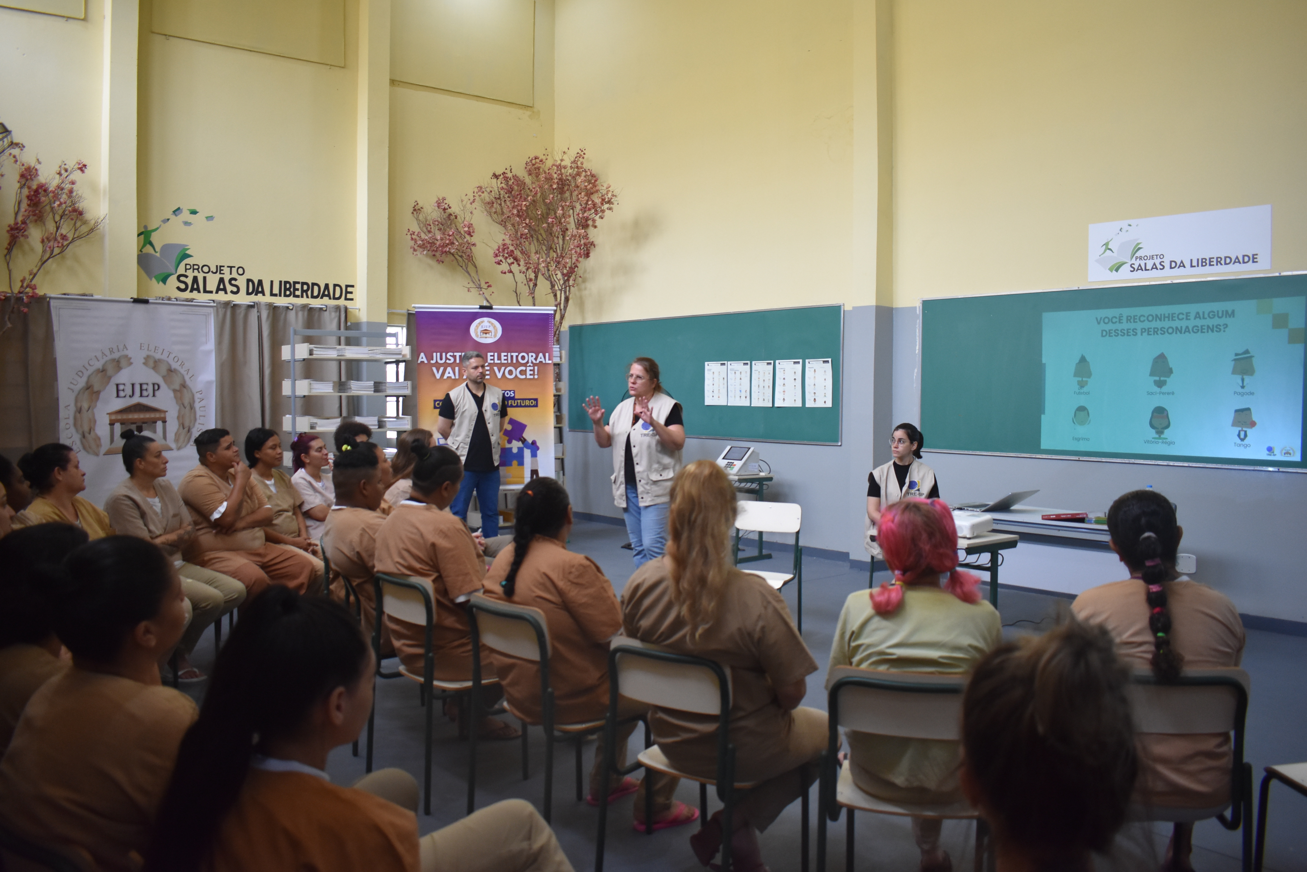Nos dias 17 e 18 de março de 2026, a Penitenciária Feminina Sandra Aparecida Lário Vianna, localizada no município de Pirajuí (SP), recebeu a equipe da Escola Judiciária Eleitoral Paulista (EJEP) para uma oficina do projeto “A Justiça Eleitoral Vai Até Você”.